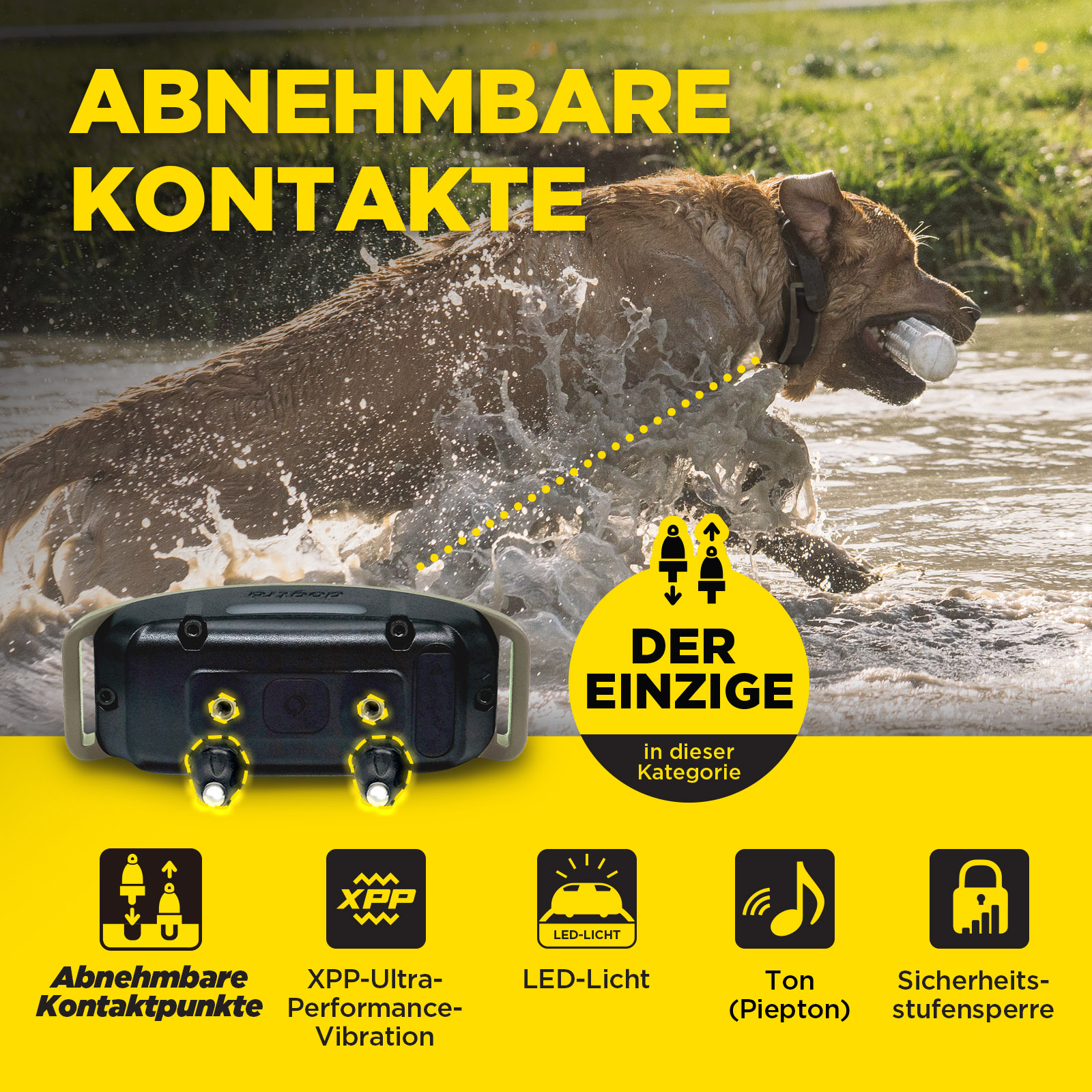 - Helle, aktivierbare Signalleuchte im Halsbandempfänger