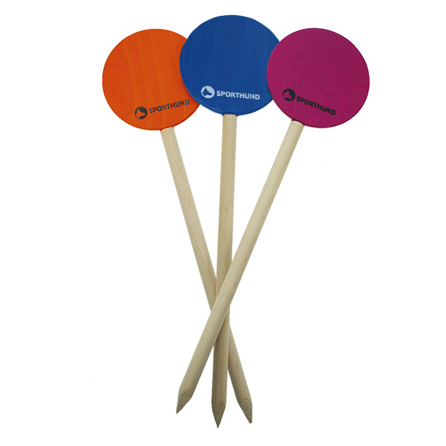 Farbiges Fährtenschild aus Holz mit einer Gesamtlänge von ca. 55 cm und einem Durchmesser von ca. 15 cm.