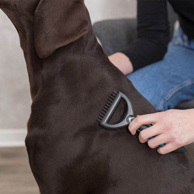 - zum Entfilzen und Ausdünnen - schneidet kleine Verfilzungen schonend heraus - glättet das Deckhaar und verfilzte Unterwolle - 1 cm Zinkenlänge - Kunststoffgriff mit Gummieinlage/Metall