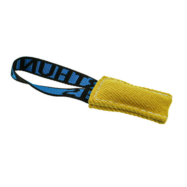 Kleine, weiche, farbige Nylcot Beißwurst bzw. Beißkissen mit stabiler Handschlaufe.