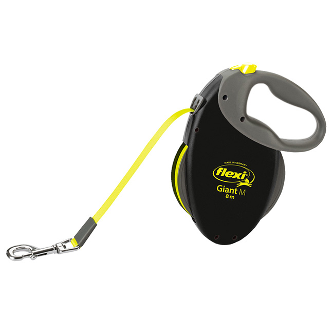 Robuste Rollleine für große Hunde mit 8?m Gurt. Die flexi Giant überzeugt durch stabile Aufrolltechnik, leuchtend neonfarbenes Band und ergonomischen Softgriff. Wahlweise als Größe?M (bis?25?kg) oder Größe?L (bis?50?kg) erhältlich – perfekt für sichere Spaziergänge bei Tag und Nacht.