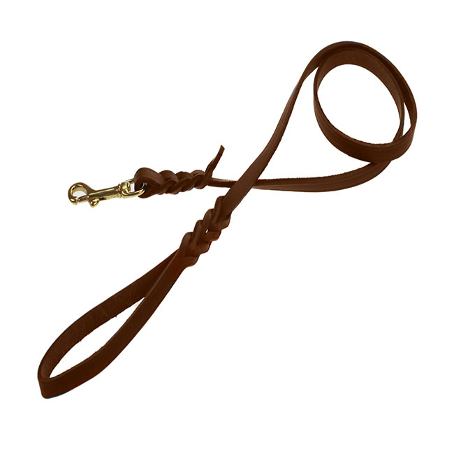 Lederleine aus braunem, weichem Leder mit Messinghaken und Handschlaufe.