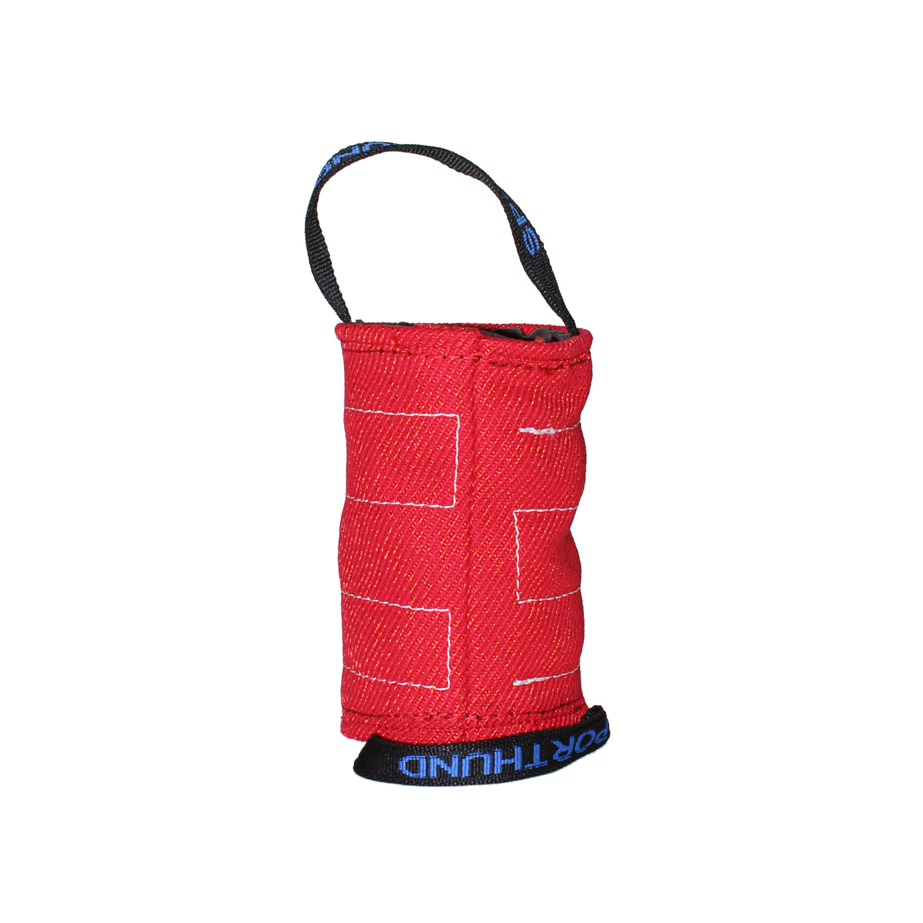 Beißtonne aus Nylcot in Rot mit weißen Nähten. Verstärkte Platten an beiden flachen Seiten ermöglichen sicheren Stand und sorgen für Formstabilität. Die Mitte ist weich für einen angenehmen Biss. Geeignet für Bestätigung und Spiel im Hundesport.