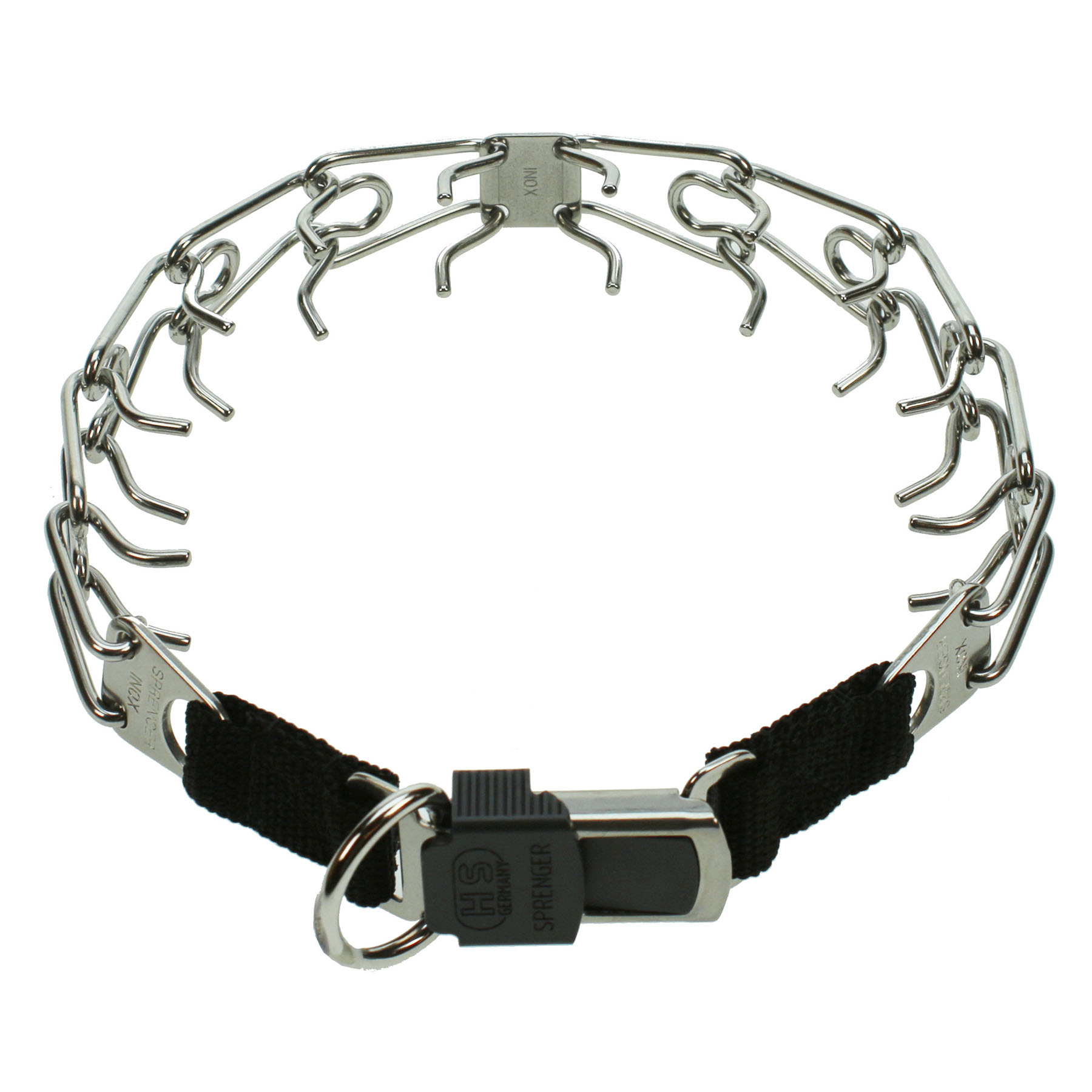 Stachelwürger mit Clickverschluss von der Firma Herm. Sprenger aus Edelstahl, Curogan und brüniertem Edelstahl.