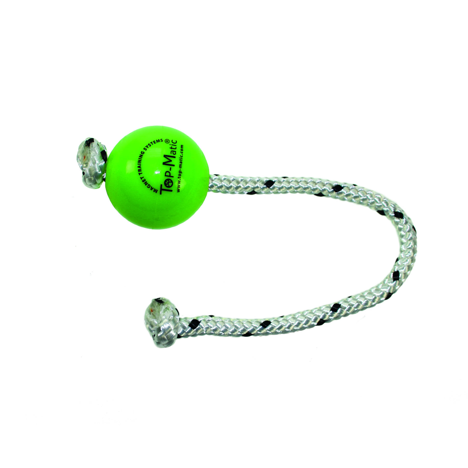 Top-Matic Fun-Ball Mini in grün aus Kunststoff mit Seil,  für die Aktivierung mit Hörzeichen, in Verbindung mit Triebförderung mittels Zerrspiel für den Hund. Für die Anwendung mit Top-Matic MULTI oder MAXI Power-Clip.